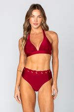 Biquini hot pants de ilhós com top alongado e bojo removível