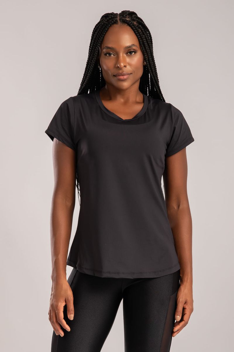 FITNESSBLUSACamiseta poliamida preta com transpassado de tule