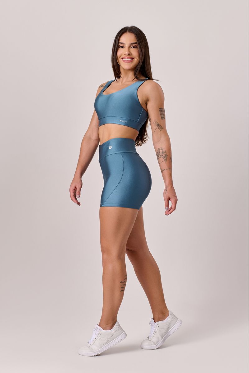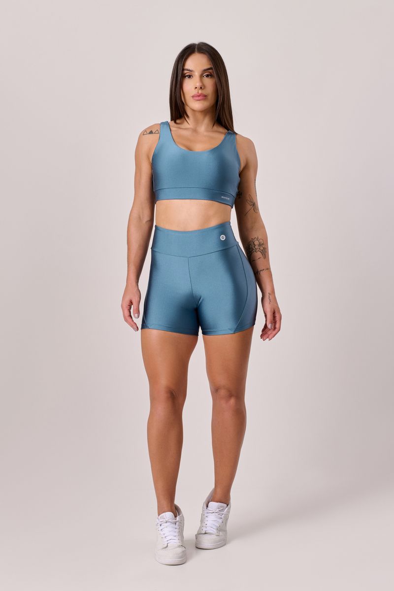 FitnessConjuntos FitnessConjunto de short poliamida azul porcelana com top sustentação