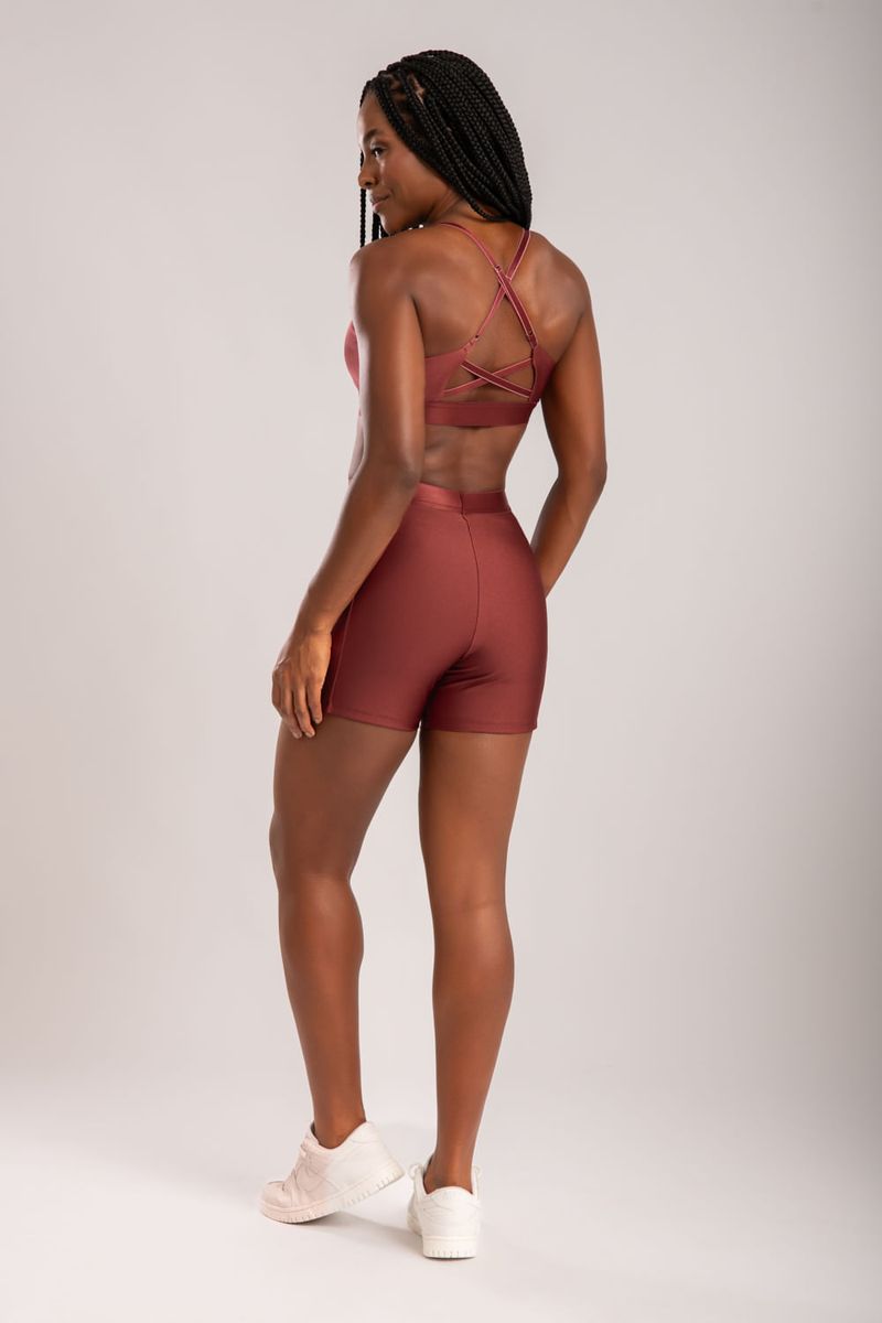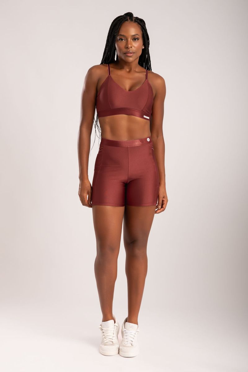 Conjunto de short poliamida marsala com bolso e detalhe de elástico
