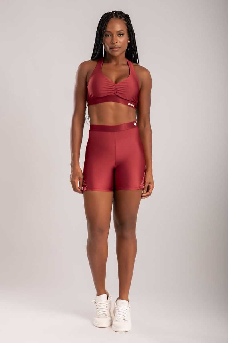 FitnessConjuntos FitnessConjunto de short poliamida vermelho desejo com detalhe de elástico