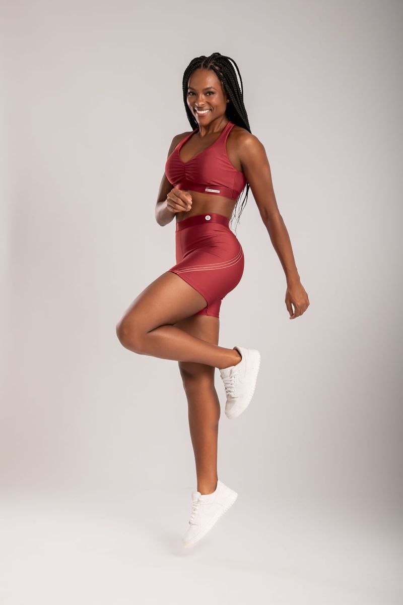 Conjunto de short poliamida vermelho desejo com detalhe de elástico