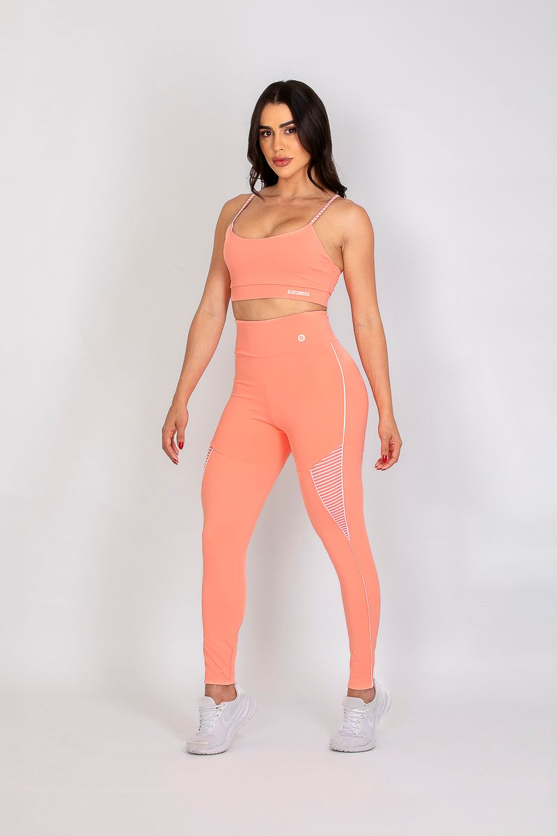 FitnessConjuntos FitnessConjunto poliamida Adaptiv pêssego com detalhe em listras
