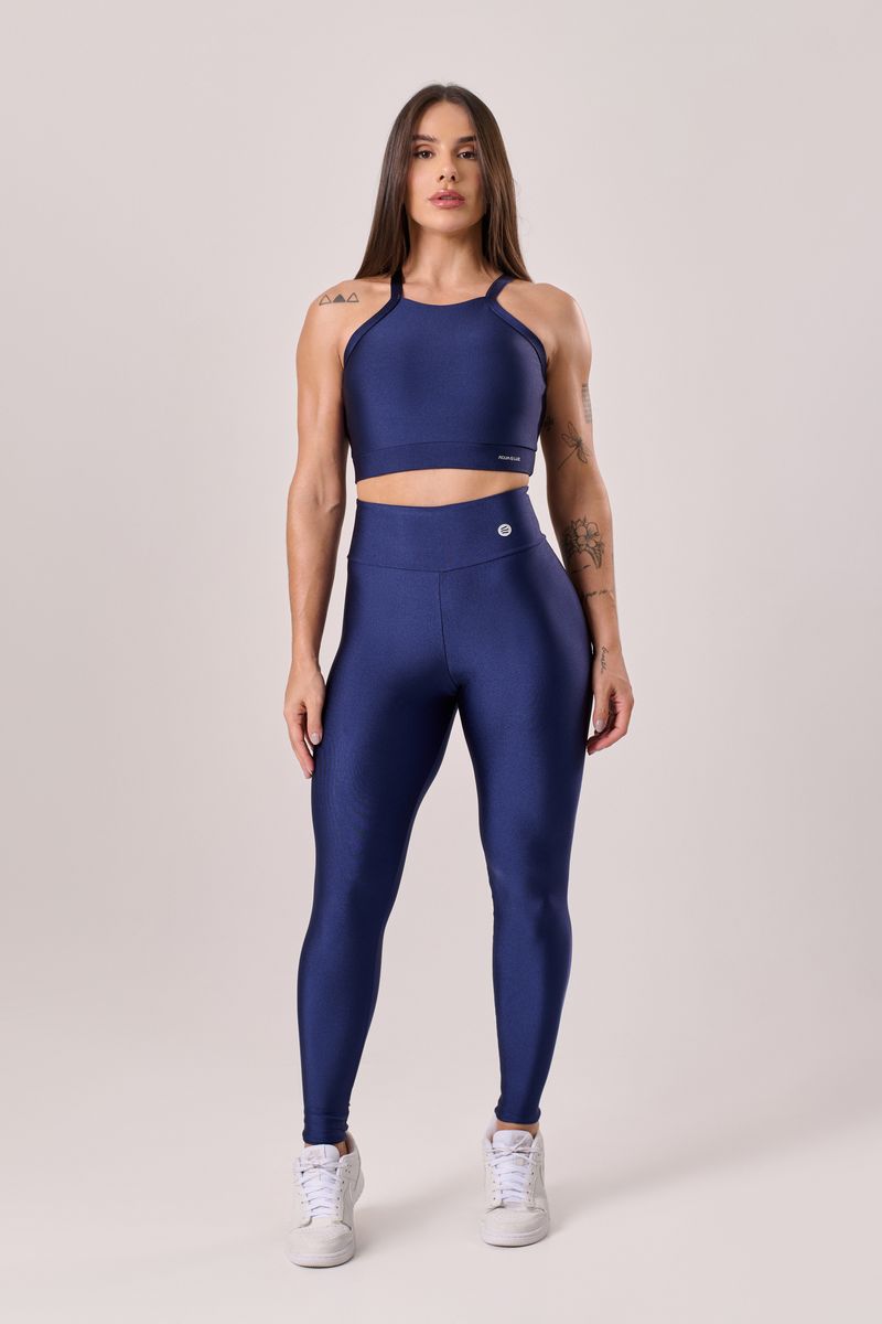 FitnessConjuntos FitnessConjunto poliamida azul marinho com top frente única