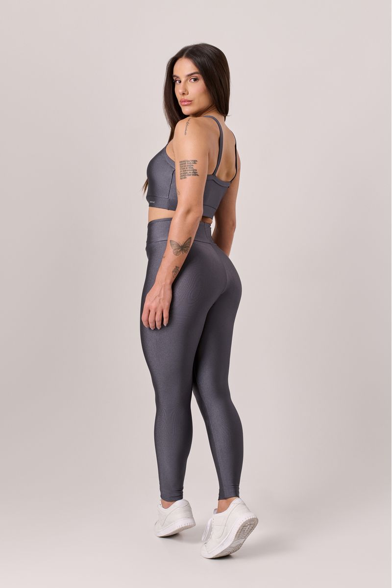FitnessConjuntos FitnessConjunto poliamida cinza titânio com top frente única