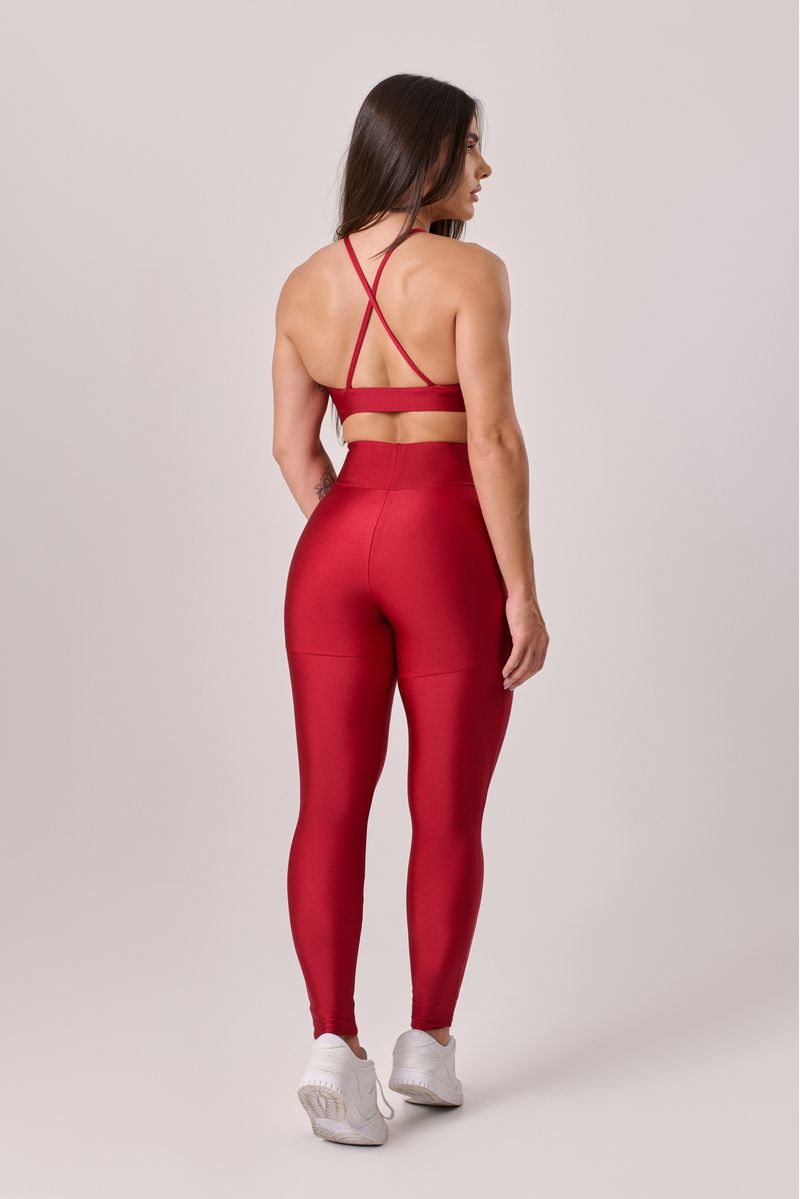 Conjunto poliamida vermelho carmim com top alça cruzada