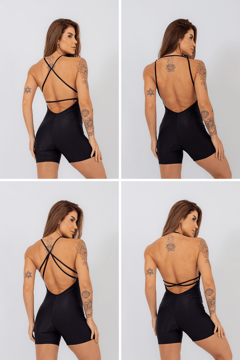 FitnessMacacõesMacaquinho decotado com alças removíveis poliamida preto