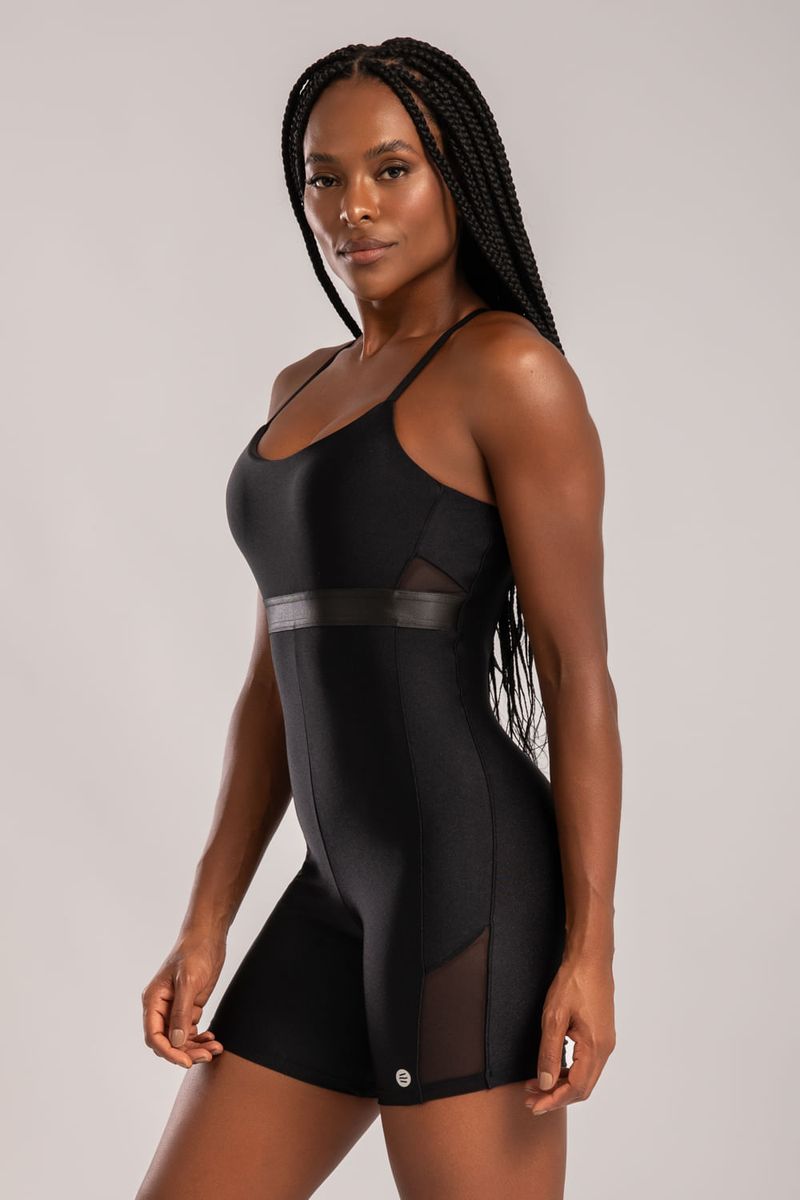 FitnessMacacõesMacaquinho poliamida preto com detalhe de tule