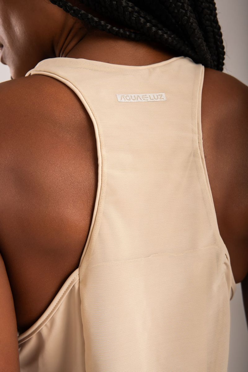FitnessBlusasRegata poliamida bege com detalhe de tule