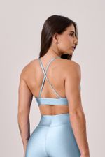 FitnessTops e CroppedsTop alça cruzada poliamida azul céu
