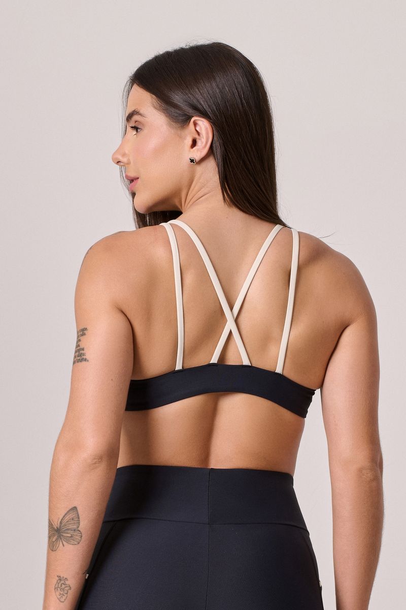 Top alça dupla poliamida Comfort preta com detalhe bege