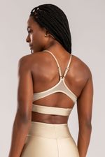 FITNESSTOPTop frente única poliamida areia com detalhe de tule