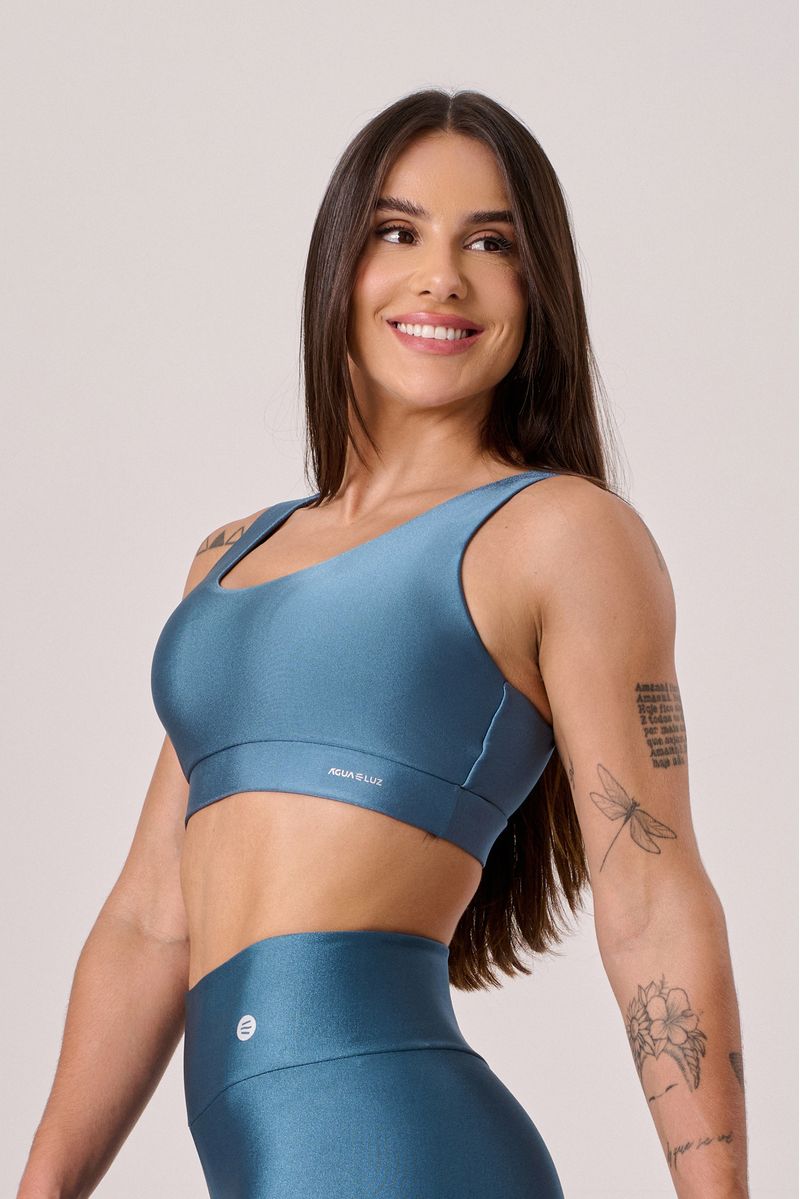 FitnessTops e CroppedsTop sustentação poliamida azul porcelana